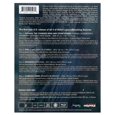What is Time? What is Memory? Are we in the past or present -- or some strange, unknowable hybrid of the two haunted by arsonists, bloodsuckers, serial killers and phantom images of our own selves? The films of Iranian director Shahram Mokri straddle the line between genre and arthouse cinema, whether Moebius strip-like meditations on classic 1970s American slasher films (FISH & CAT), political thrillers (CARELESS CRIME), 1980s New Wave sci-fi/vampire movies (INVASION), or offbeat Jarmusch-meets-Tarantino indie mysteries (ASHKAN, THE HOLY RING & OTHER STORIES). It’s small wonder that Abbas Kiarostami in his last film, 24 FRAMES, left a cryptic message on screen in Persian that simply read: “Shahram Mokri.”